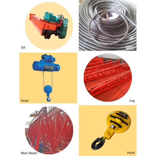 1. Steel structure part of the gantry crane is welded by U-steel with light weight, low cost and convenient assembly and disassembly.